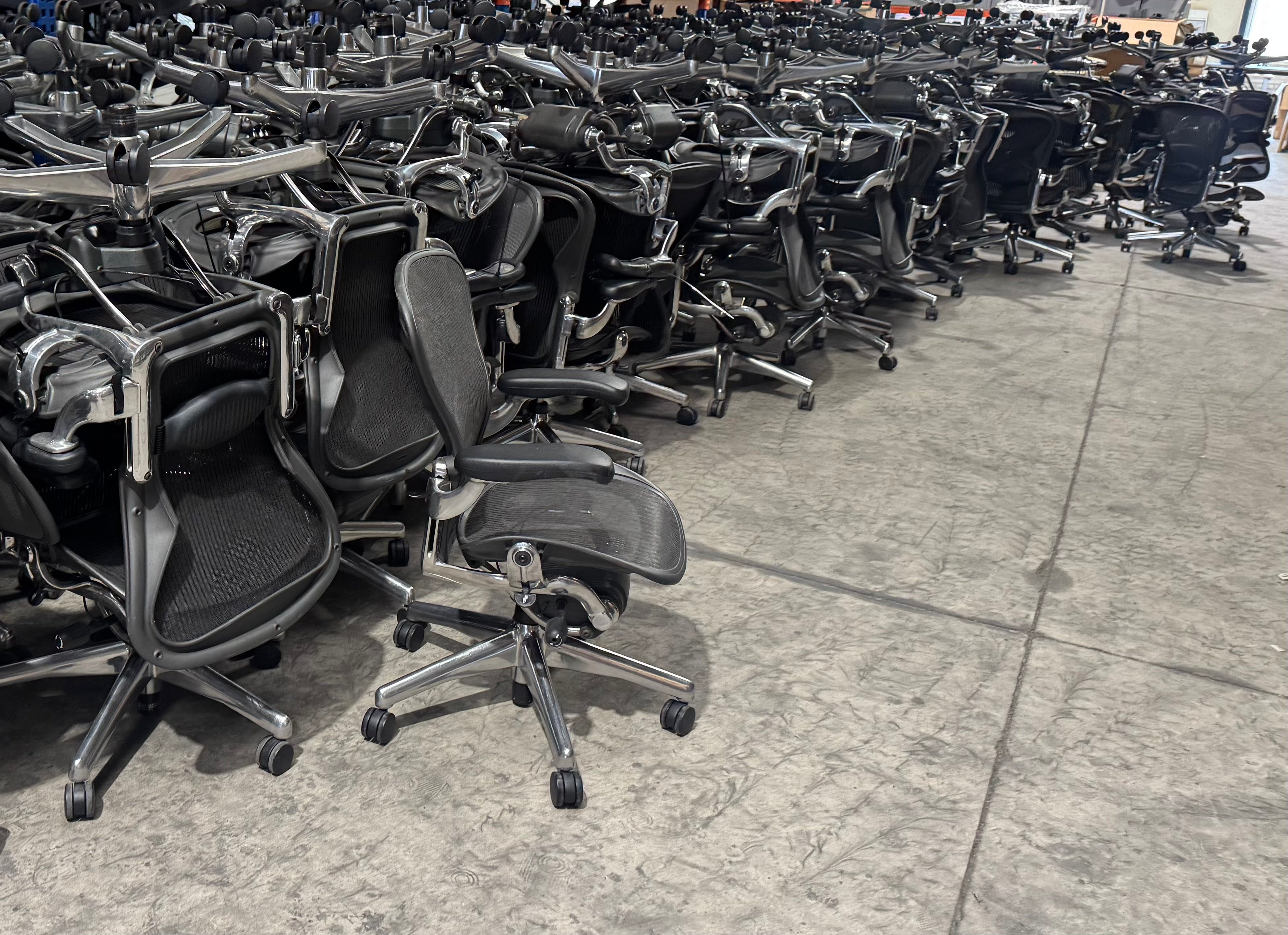 Our service is ideal for office relocations, company closures, furniture upgrades, and liquidations. We regularly purchase large quantities of chairs, including Aeron, Mirra, Embody, and other Herman Miller models.